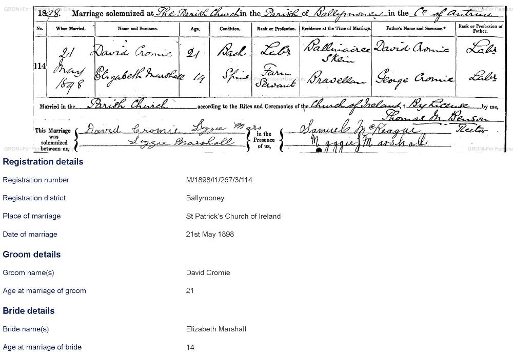| Wife: | Elizabeth MARSHALL ( - ) | |