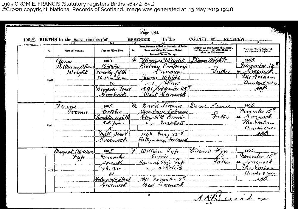 | Spouse: | Francis CROMIE (1905- ) | |